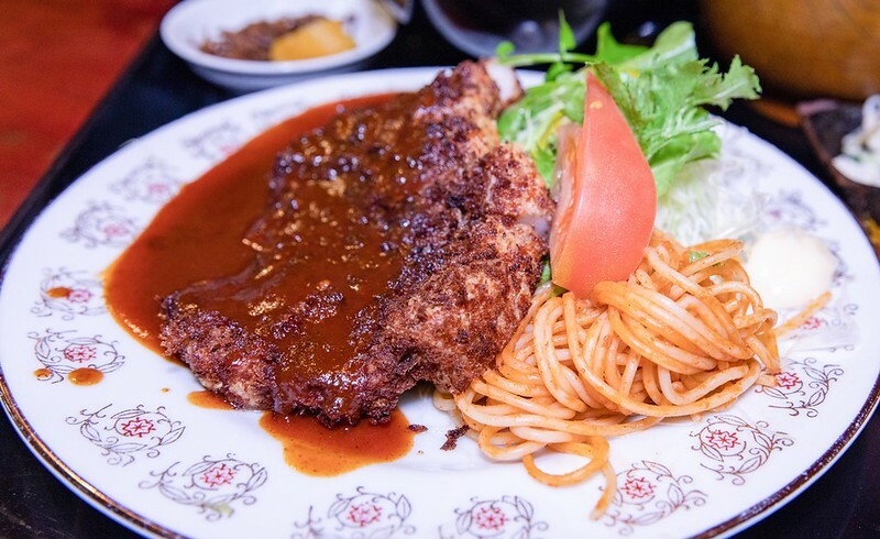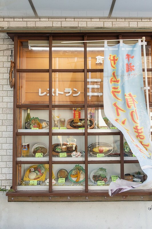 門口的玻璃櫥窗放著料理模型,大概是昭合時代留下來的餐廳共同特色之一,尤其是這類日洋混風的レストラン(餐廳)。