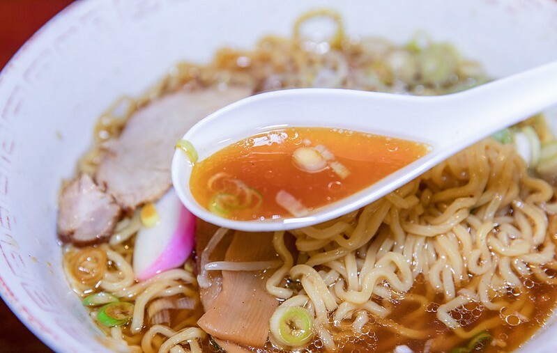 說到牛骨拉麵可能有部份的人會聯想到大分,但大抵上兩個地方的牛骨拉麵還是有些許不同,大分的牛骨拉麵湯頭偏白,而鳥取的牛骨拉麵乍看很像濃一點的醬油拉麵,有一個說法是鳥取的牛骨拉麵是柔合了中國東北(滿州)的作法,湯頭喝起來除了淡淡的醬油鹹香外,還有濃濃的牛骨油香,多喝幾口還會上舌沾唇非常迷人,鹹度略高但還在可以接近的範圍,個人相當喜歡,特別是那獨特的油香。