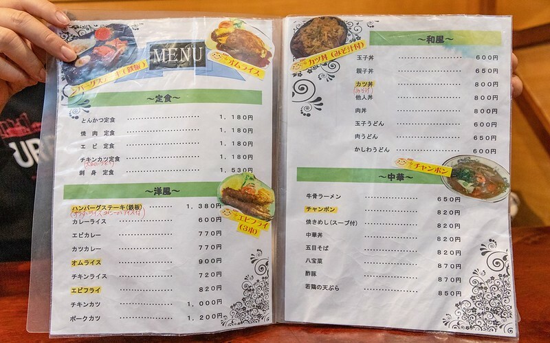 店裡的料理選項非常多,光是薄子上就有洋、日、中三大類多達數十種的料理,另外牆上還有一些日式定食,白板上寫的都是季節限定的料理。