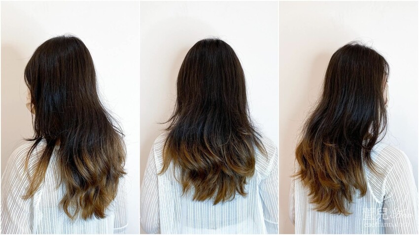 髮尾是先前其他家美髮店染壞的部分,還在努力留長中