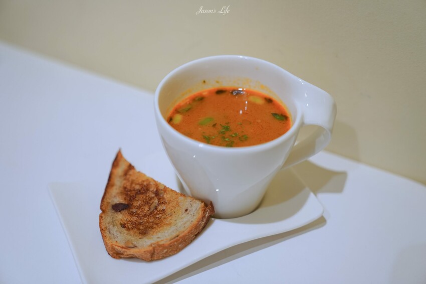 今日湯品是海鮮蔬菜湯,番茄的基底滿濃郁的