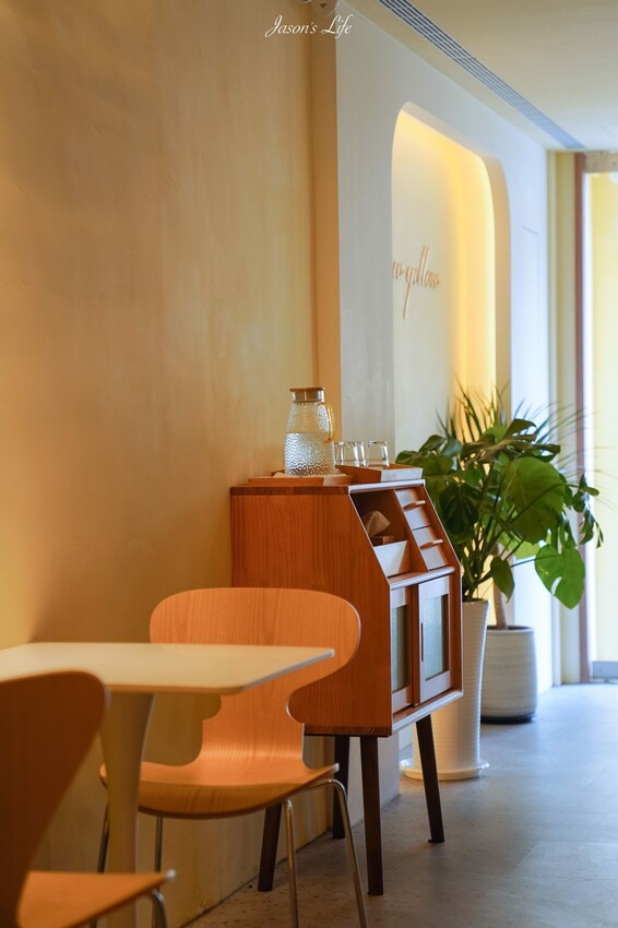 餐廳內部和外觀一致的風格,都是採鵝黃色的色調