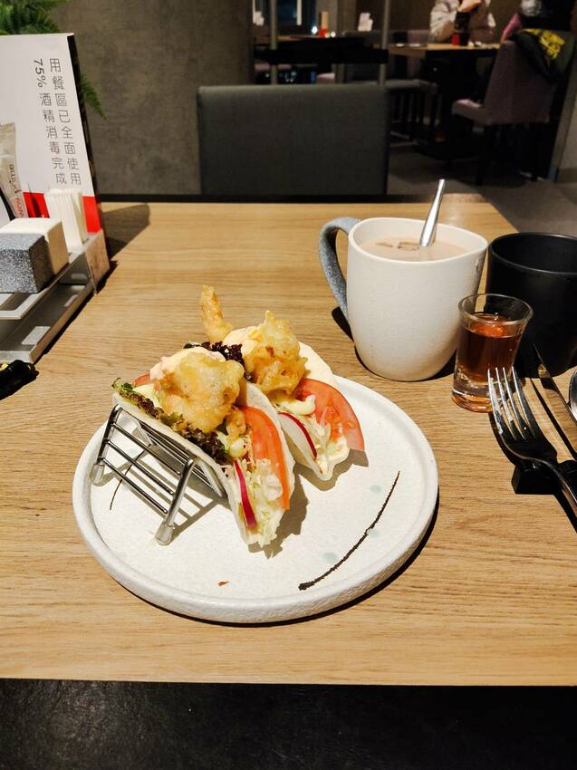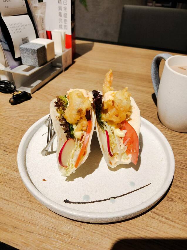 海老偏小,著重在吃菜+餅,但不會膩,也沒有過敏反應,算新鮮。 焦糖完全不是必需品,加了味道也不會比較醇濃。備註:味道普通,捲餅可以嘗鮮一次。