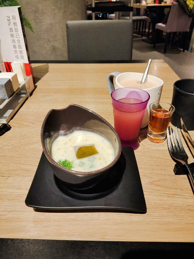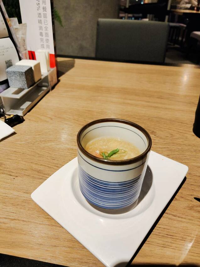 第三道/前菜:干貝海鮮茶碗蒸蒸蛋+羹湯的概念,味道一般。