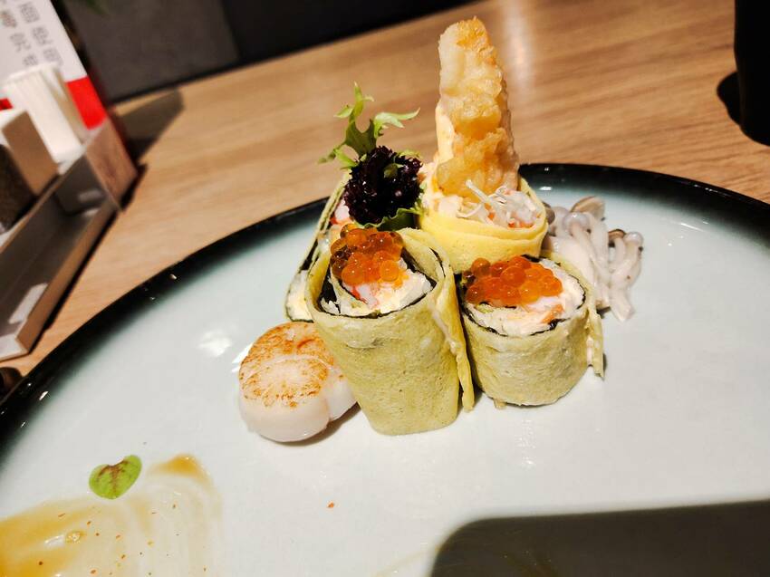 ↓第二道/加購:軟殼蝦玉子捲佐干貝
