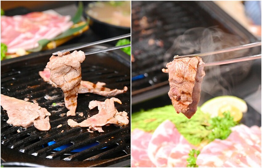 另一個嫩肩牛我更愛,它又叫板腱牛,脂肪少,肉結實,但烤的熟度拿捏得好其實嫩度還是相當不錯,柔嫩肉質有帶點咀嚼口感很好吃。另外的精選牛跟牛肋條我覺得表現也不錯,精選牛這天配的是蔥鹽牛舌好吃度當然不用說,