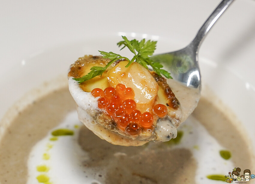 松露香氣很濃稠,每一口都能感受到精華香氣,大口咬下軟Q鮑魚、爆出鮭魚卵鮮味