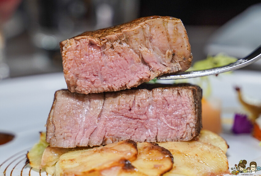 五分熟度保有軟嫩口感,菲力本身油脂少