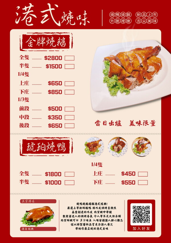 因應周年慶,還推出了新品燒鴨燒鵝,限定每週六日。