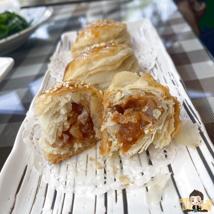 蜜汁叉燒酥(138元/3入),金黃色的外皮、芝麻香氣加上酥皮,光看就讓人垂涎三尺了