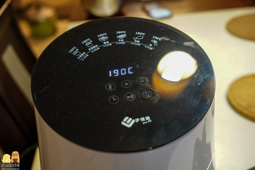不管是要吃蒜香鹽酥杏鮑菇、還是氣炸排骨酥或雞翅,只要電源插下去,選擇好溫度跟時間就能輕鬆氣炸好