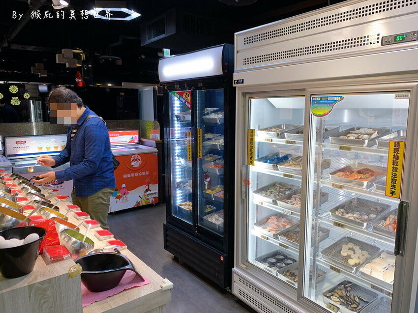 另外海鮮一櫃跟火鍋料一櫃,提供的海鮮不是只有蝦子蛤蠣魚肉而已,還有螃蟹、小鮑魚、鮮蚵、魷魚圈、小卷、小章魚、小花枝、聚合貝等。