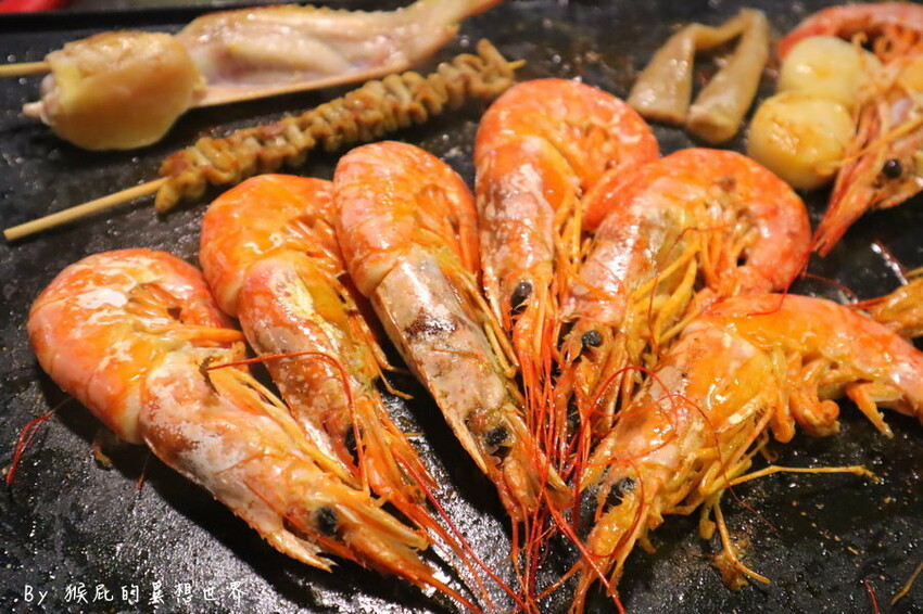 烤好的蝦子真的太美味了,後半段都在烤蝦,一吃就上癮,前面先吃火鍋半飽,後面烤一整排的蝦子超過癮,推薦大家來一定要吃火烤兩吃。