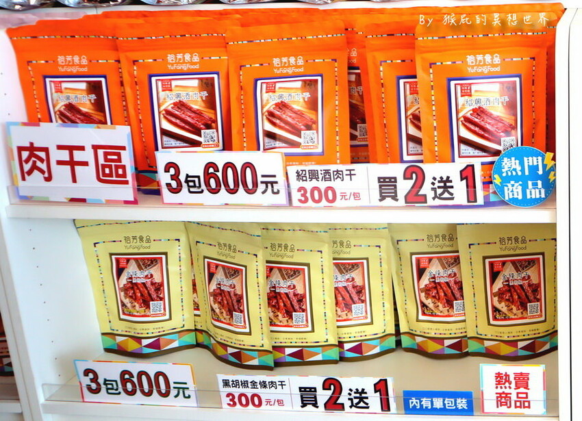 這一區是老公的愛,直接拿3包紹興酒肉乾沒再客氣捏,買二送一等於平均一包200元,紹興酒肉乾是裡面最軟嫩的,口味也是滿特別,感覺不同價位肉乾還是有些不同。