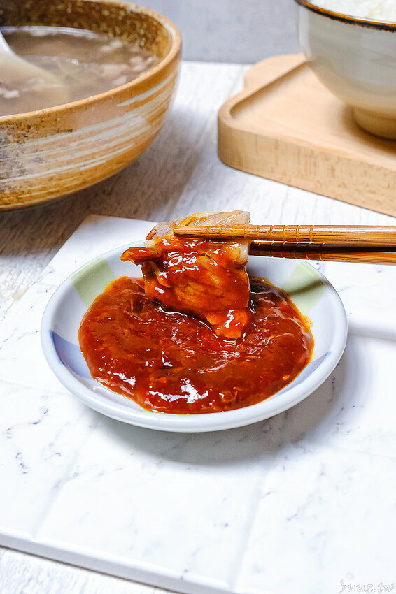 台灣豬里肌肉片的瘦肉比例就比五花肉來得高,煮熟後可以看到白白一大片的瘦肉,但是吃起來卻很軟嫩,出乎意料之外的好吃,很推阿~