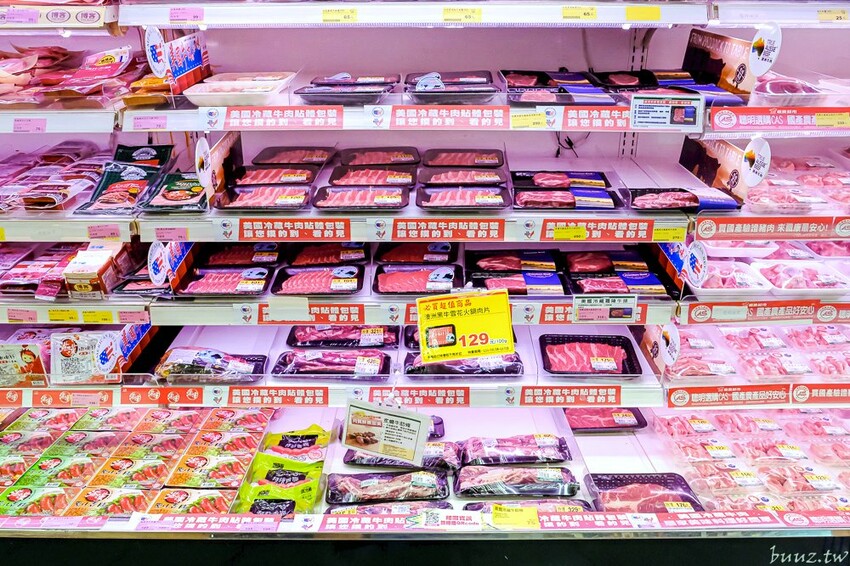 再過來就是冷藏肉品區,楓康超市青海店的冷藏肉品區很大,牛肉跟豬肉都各自有一整排的區域,尤其是火鍋肉片的量比較多,下班後趕來買都還買得到。