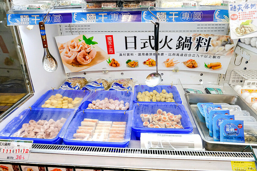 挑好湯底後再來逛逛火鍋料區,沒想到楓康超市內還有弄一區日式火鍋料專區,各類火鍋料使用頂級魚漿,比例高達90%以上製作。