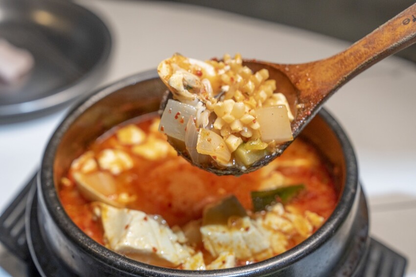 湯品的部分有豬肉嫩豆腐、海鮮大醬、海鮮嫩豆腐三選一, 這次選擇了海鮮嫩豆腐,除了湯底非常口味以外,嫩豆腐還有海鮮都給的毫不手軟,真的會吃到停不下來!