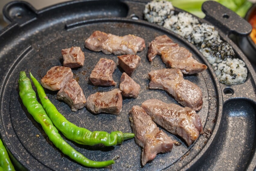 肉品的選擇種類相當多樣,這次點了伊比莉豬梅花、骰子牛肉和 牛肉片,肉品在烤盤上滋滋作響的畫面光看都要流口水啦~