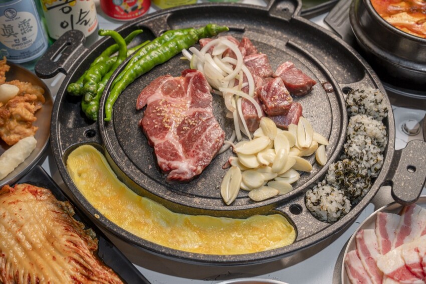人牛豬套餐中包含前菜、隨烤盤物以及A、B、C區三種肉品任選~除此之外還能選擇湯品、主食和韓式炸雞,多樣化的餐點選擇讓大家吃好吃滿!