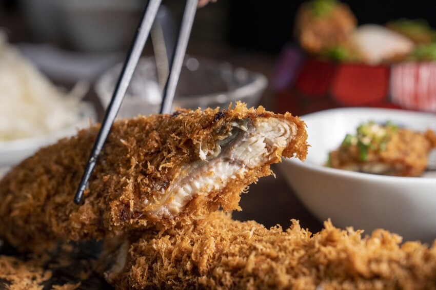 這次「MAiSEN邁泉豬排」推出的全新商品「極上炸鰻魚」選用了長達30公分的超浮誇台灣鰻鰻魚,裹上麵衣後炸得金黃酥脆相當療癒~~
