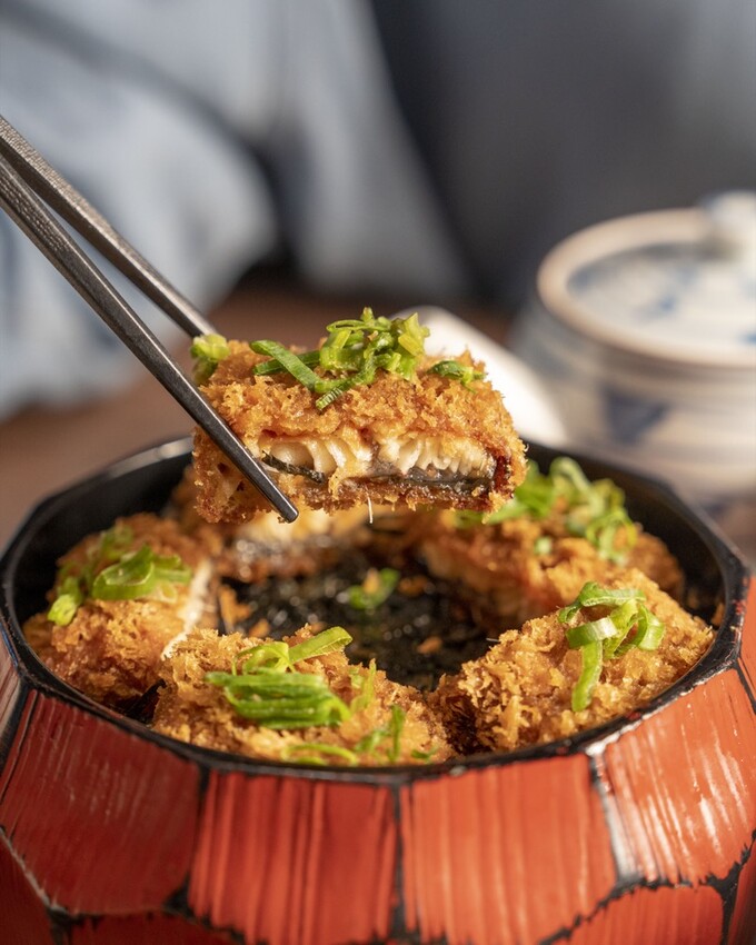 喜歡多層次吃法的朋友一定要試試看三部曲套餐,搭配蔥花、芥末和芝麻和炸鰻魚湯泡飯,滿足你的饕客味蕾!