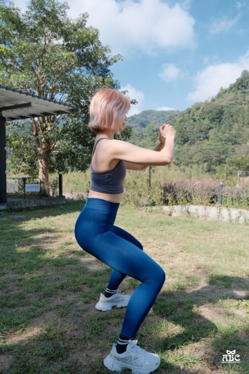 要測試一條好褲子是不是合格,就要用深蹲來考驗它!如果你做深蹲這個動作,發現大腿處很繃感覺褲子要炸裂那就是NG!真正好的訓練褲是像這樣,能有一定的壓力存在,保持每個動作的肌肉不輕易移位,而不是完全的束縛著不能活動,這點對於運動女孩是很重要的選擇關鍵喔!