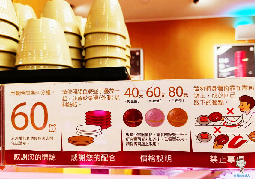 壽司郎是按照不同盤子的顏色來計價: 紅盤$40,銀盤$60,金盤$80