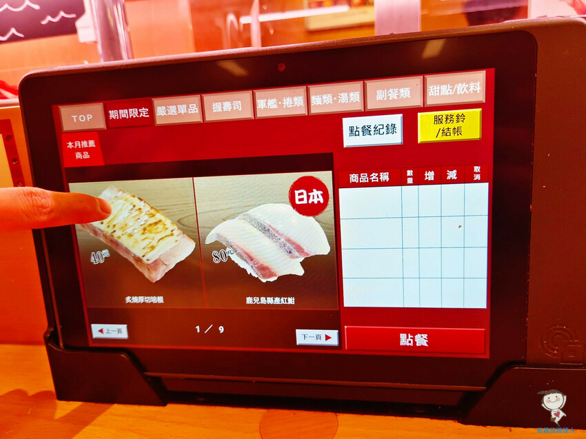 每張桌子上都有平板可以左右滑動點餐,上面的欄目還有分門別類
