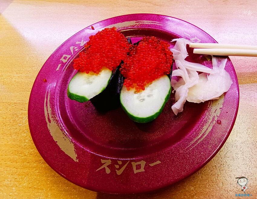 小黃瓜飛魚卵軍艦$40,飛魚卵會在口中爆開的口感還挺美妙的