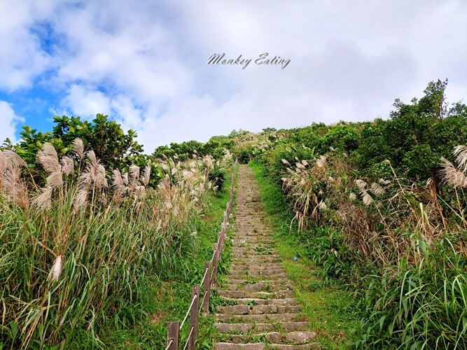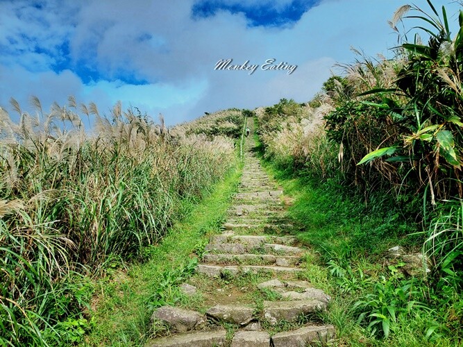 沿路都是這樣的石階陡坡,如果下過雨石頭會特別滑要注意安全。步道兩側已長滿芒草好美