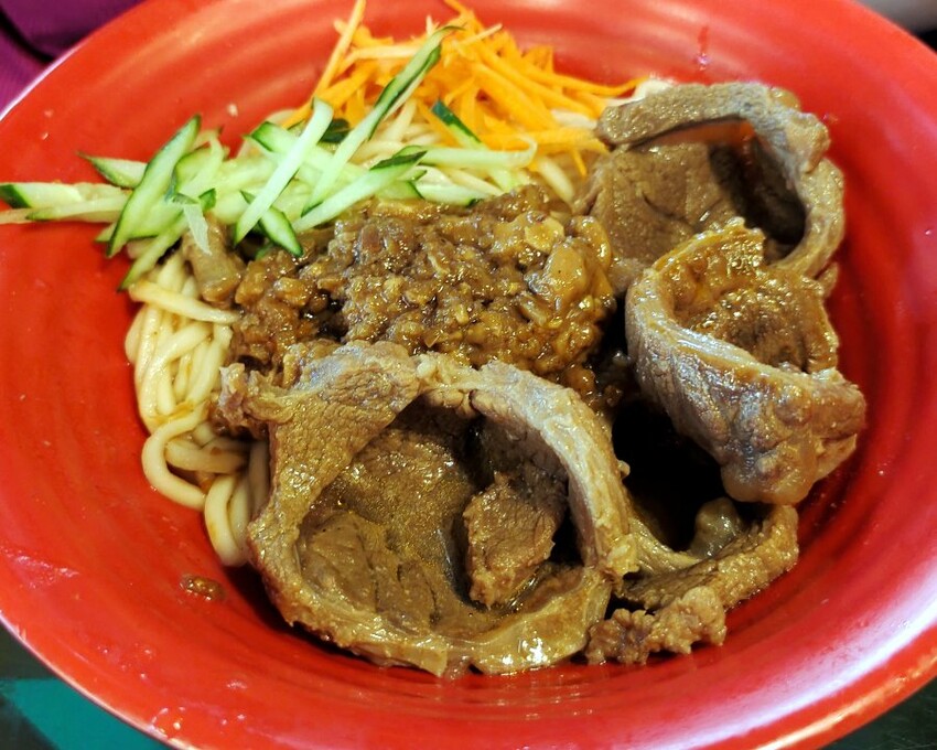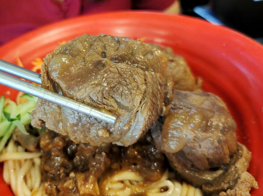 ▼牛肉雖然大塊,但不如網路上有些朋友說的很軟嫩,當天吃到的都是偏硬有嚼勁的口感,覺得滿可惜的~下次還是單點炸醬麵就好(笑)!