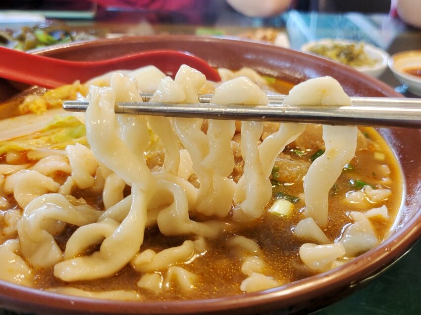 ▼粗捲麵吃起來有點偏硬,不算是Q彈那種,一咬就斷~可惜不是我們喜歡的那種嚼感!