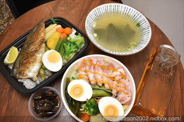多肉舒肥餐(經典熟成舒肥雞腿-客家桔醬)飯換菜蛋、健康魚兒餐(炙烤薄鹽台灣鯖魚)、愛呷醋涼拌雲耳、新竹北埔東方美人以及韓式海帶湯(限量)。