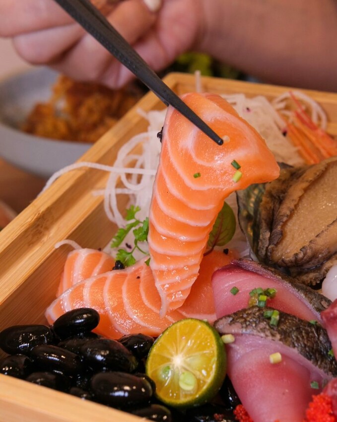 ▼每一樣的新鮮度都超夠,其中鮭魚生魚片的鮮甜滋味讓人難忘,搭配底下鋪好鋪滿的日式醋飯,吃完絕對會讓人超有飽足感~