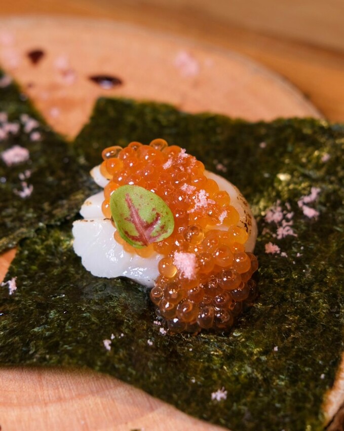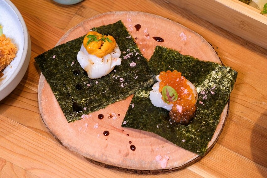 干貝佐尊鮭魚子💰170元 干貝佐海膽💰180元
