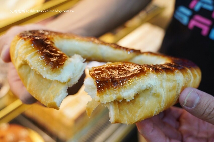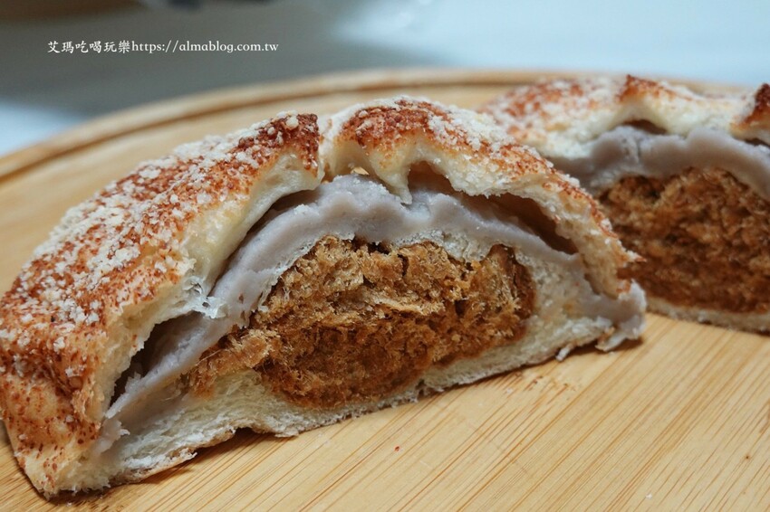 這切面不用我說!裡面配料比麵包還大,肉鬆好綿密不乾口,芋泥結合肉鬆香氣一絕,而且每一口都吃得到豐富餡料。