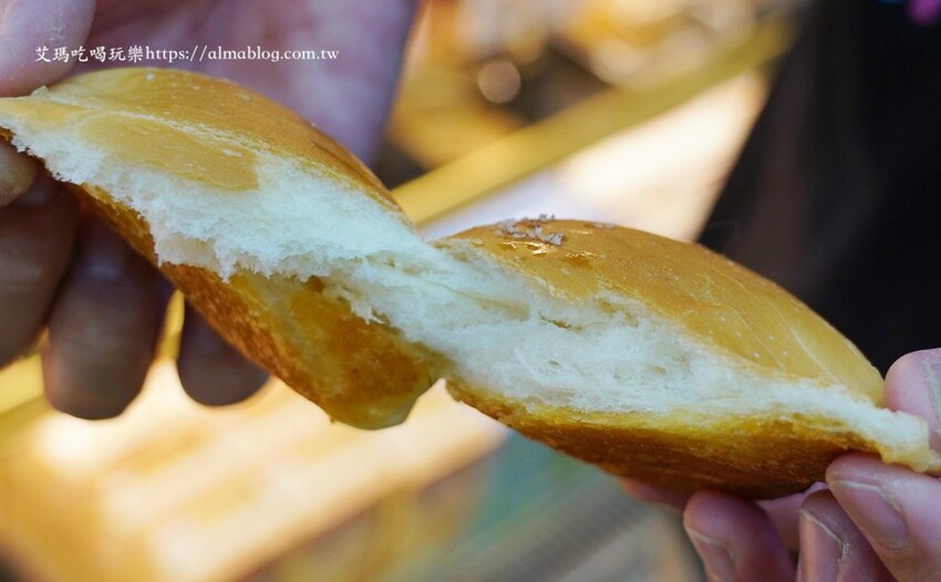 一拿在手上這麵包好輕盈,和我想像中完全不同!麵包鬆軟中帶點彈性,這麵包真的很單純,只有蜂蜜味沒其它甜味,蜂蜜可延緩麵包保濕效果,不需要其它食品添加劑,麵包組織就很軟彈。