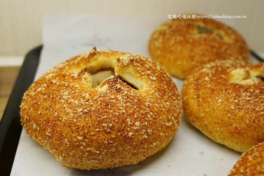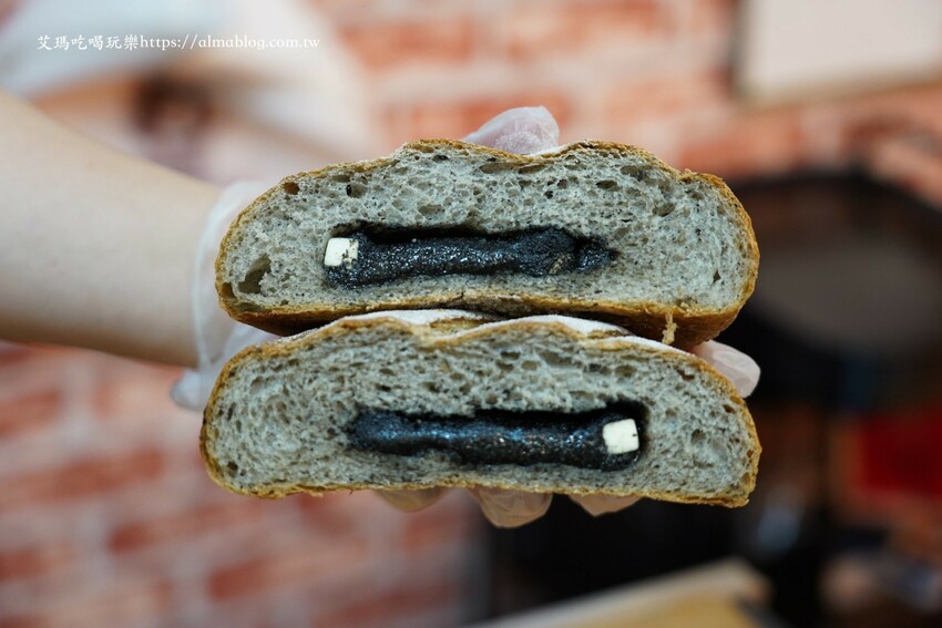 喜歡芝麻朋友看過來!營養黑芝麻粉揉和在麵團裡,所以連麵包體都有芝麻,加上師傅自己調和芝麻餡,很醇香不油膩的芝麻味,沒有多餘甜膩感,還加入cream cheese,郭先生本身就很喜歡吃芝麻,這完全就是他的菜。