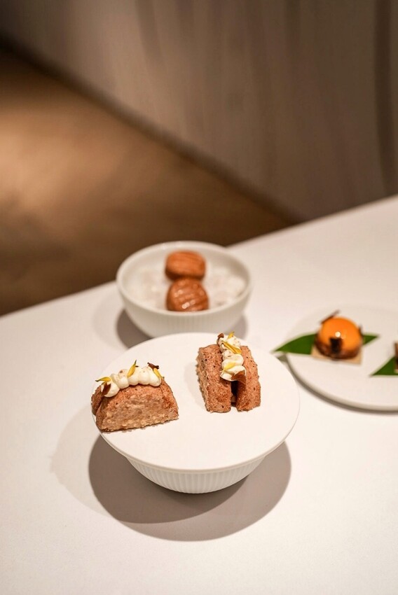 秋季菜單和夏季菜單相比,雖然除了肉凍派以外都算是新菜色,不過整體結構組成是相似的,自己很喜歡這種以肉類或海鮮的鮮味為主軸,再搭配其他食材提味的概念;中段到甜點部分用上濃濃秋意的食材,吃起來比夏季菜單多了清爽感