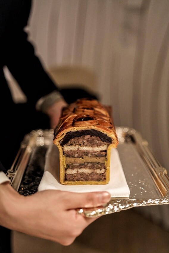 由酥皮包裹台灣的香料豬肉、屏東白鰻、鴨肝