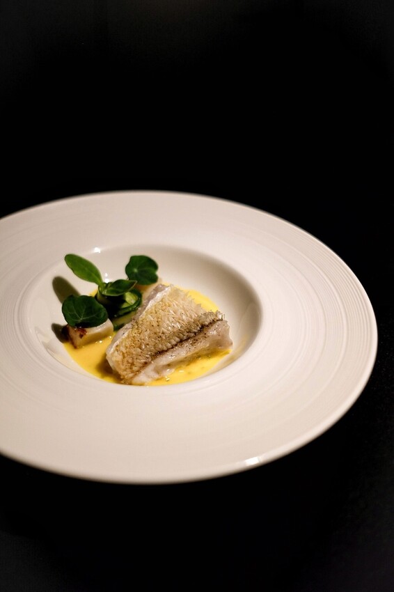 佐以蛤蜊高湯、奶油、柚子和番紅花等調和的醬汁