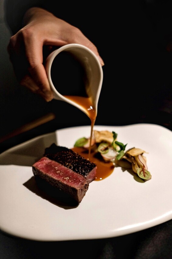 桌邊服務生Sunny看我拍照的習慣就迅速發現我總是挑選非燈光直射的桌邊作為背景,後續上菜、擺設裝飾都放在差不多的位置,觀察細膩又能即時應對用餐者的需求,讓人印象非常深刻