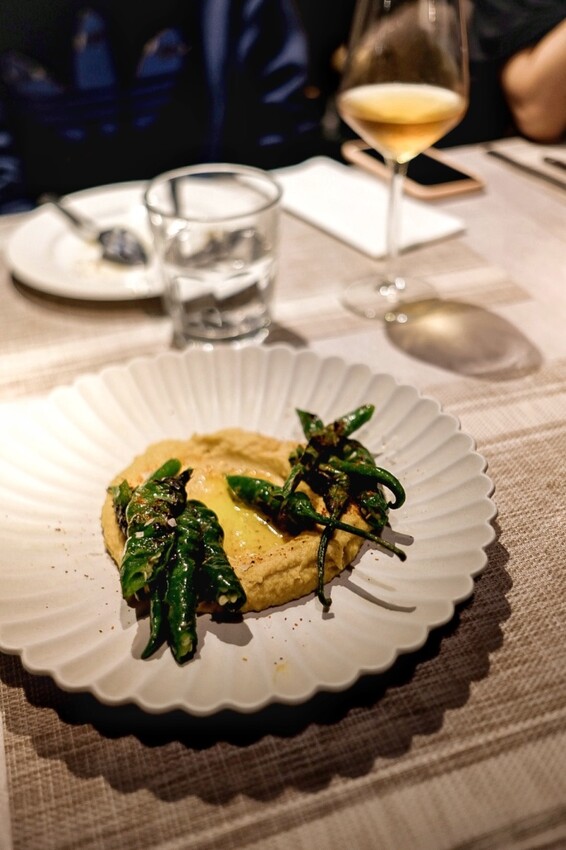 比起爽口私心更愛濃厚的菜色,細細的鷹嘴豆泥加橄欖油帶咖喱香,用炭香十足的糯米椒沾著吃超級療癒