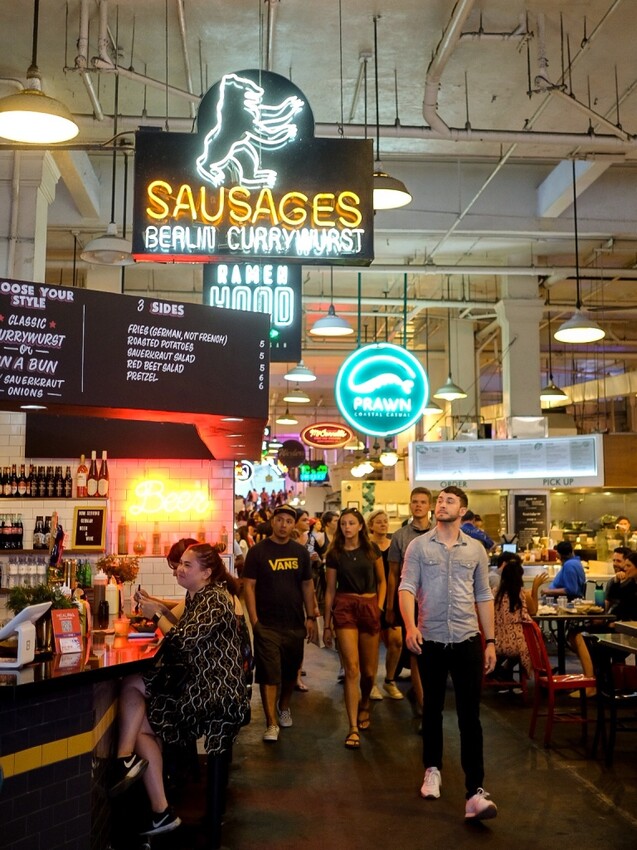 我家長輩無論在國內國外都特別愛逛大大小小的食物市集,於是特地安排到匯集各種異國小食的Grand Central Market尋覓晚餐,雖然在這裡差點因為長輩很愛亂走亂問又不太會講英文而生氣,但想想人老了可能就是會越來越幼稚不必太苛責,也就從此改變面對長輩的心態了(真是人生轉捩點的一趟旅程)
