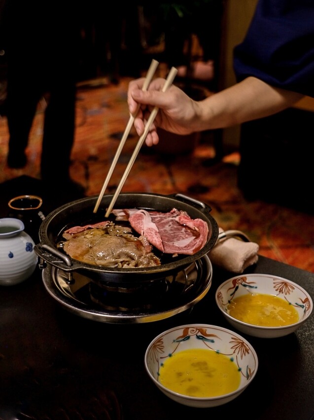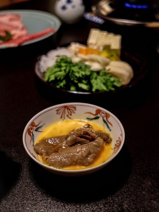 不過感覺因為完全不會日文所以不太好跟服務員溝通,事後才知道原來主食除了單選白飯配壽喜燒之外還能選擇飯後才上的半熟蛋蓋飯(玉子ご飯),這才想起原來服務員餐前問我的話有可能是要問這個,當時因為只聽得懂白飯的日文就選了白飯🤣 下次有機會再去的話要做好功課!