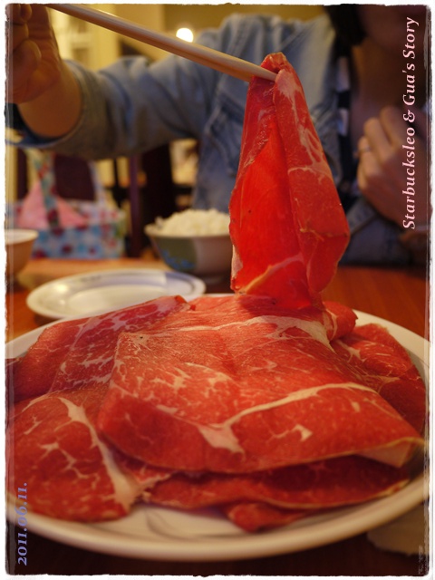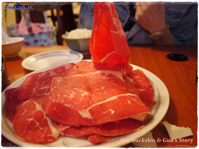 原本擔心只點一樣肉會吃不飽的瓜,看到這滿滿一盤又大片的沙朗牛後,露出滿意的微笑