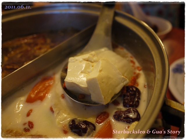 牛奶鍋的鍋底,採用大白菜、枸給、紅棗、蕃茄......還有嫩豆腐