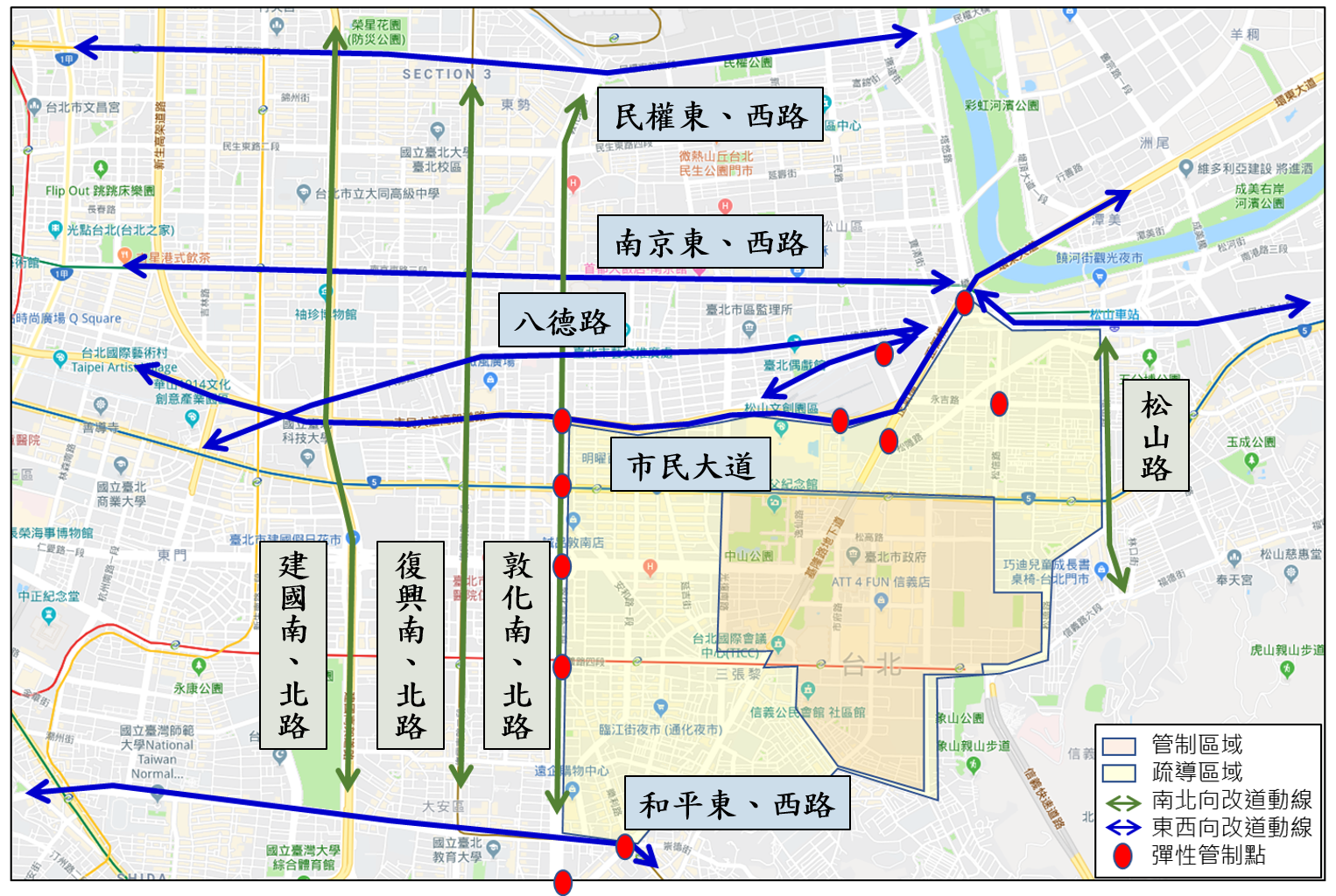 管制期間可停放場站:松山家商、富台公園、龍門廣場、捷運大安站、臺北醫學大學