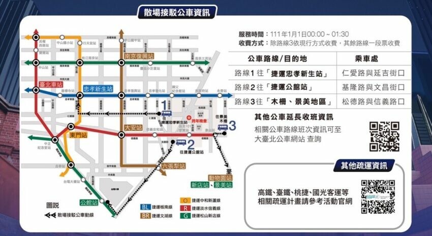 台北市公車配合跨年活動延後收班,請至台北市交通局查看